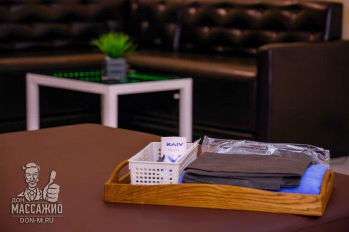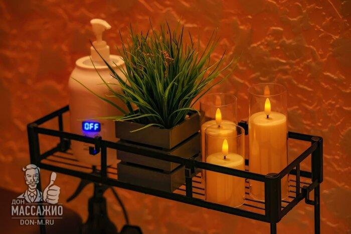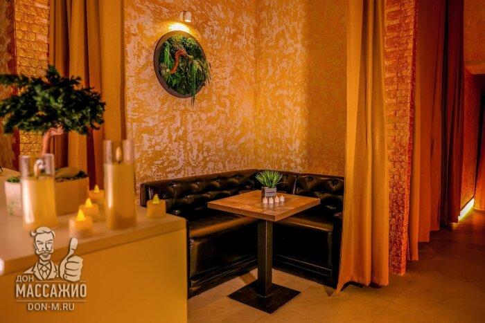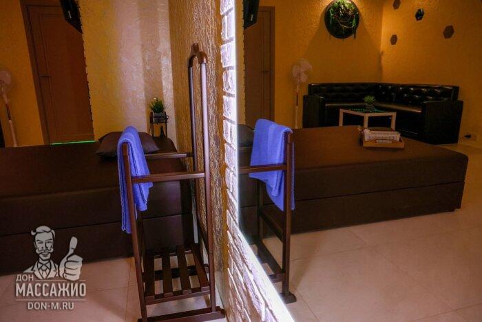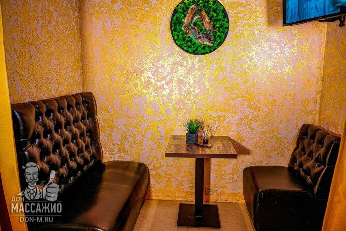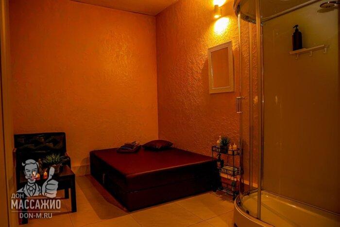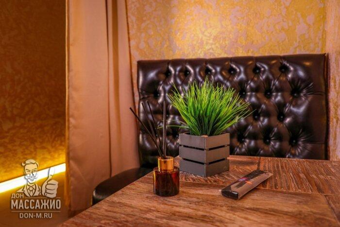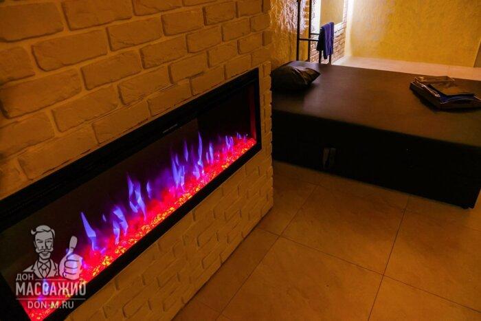 Пип-шоу (массажистка ласкает себя, гость наблюдает за ней)