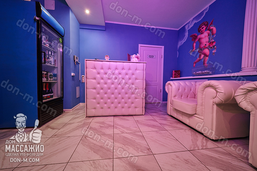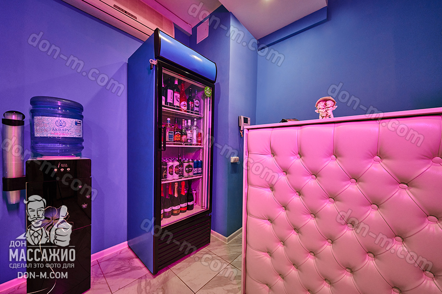 Оно и понятно: с массажистками здесь принято знакомиться прямо в холле, поэтому все удобства под рукой – и админская стойка, и бар, и кулер с водой. Даже кухня имеется, но детально я ее не изучал, но если вдруг захотите перекусить – имейте в виду, как и доставку из соседних заведений. Гостеприимные мероприятия соответствующие: миниатюрная админ предлагает пригубить чай, кофе, воду, а то и горячительного – 50 грамм в подарок!