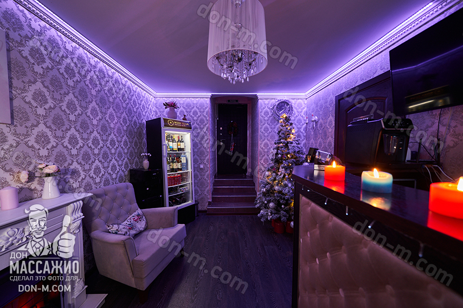 К концу декабря я захотел совместить приятное с полезным: заскочить на массаж в «ROXY CLUB» и как следует отщелкать салон. Подарок себе и весьма приятный фотосет в одном флаконе, так как в «Рокси» есть на что посмотреть и есть что снимать. Визит мой выпал на предновогоднюю суету, потому меня встретила не только весьма претенциозная гостиная, но и приятные глазу украшения: гирлянды, свечи на стойке ресепшна, фонарик на камине и прохладное, бледно-фиолетовое освещение.