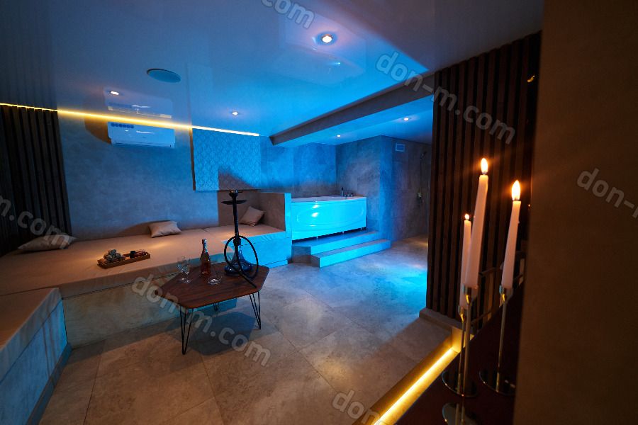 Если коридоры не могут похвастать необъятными просторами, то с местом в комнатах проблем нет: причем как в VIP-помещениях, так и в обычных. И раз уж речь зашла о «випках», углубимся в этот вопрос – из семи комнат статуса VIP удостоились четыре. Больше половины! Отличаются они и объемами, и конфигурацией: в них есть места для компаний, разместились джакузи. Еще в одной «випке» – сауна, а в соседней хамам.