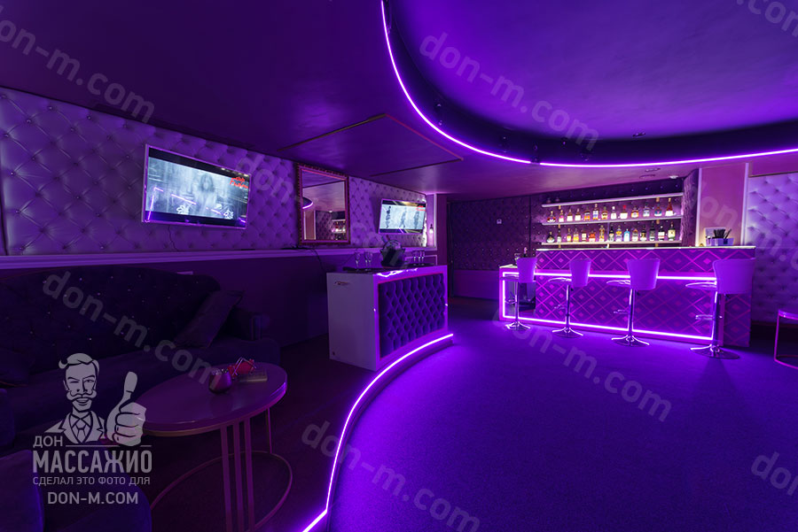 Сразу видно «клубное» прошлое помещений. Хоть «Вегас» и основательно отремонтировал всё под функционал салона эротического массажа, окончательно отходить от клубной концепции не стал, поэтому тут вам и просторный зал, и удобные диванчики по бокам, один из которых облюбовали массажистки, и барная стойка. А поверх столько неонового света, что хоть плазменный топор вешай. Или какие там топоры будут в мире победившего киберпанка?..