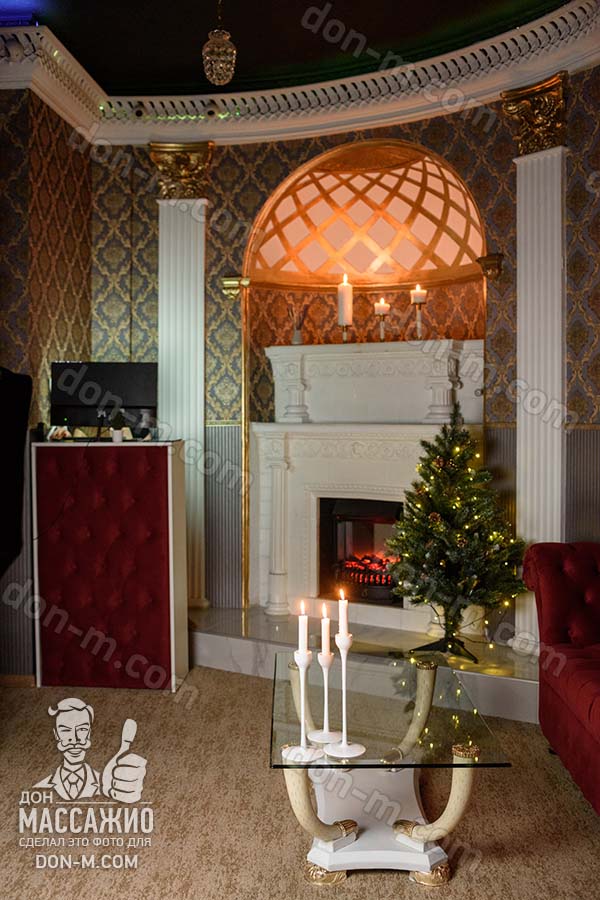 Рецепция встречает, конечно, по-королевски: электрокамин, диванчик, помпезная – в хорошем смысле слова – обстановка.