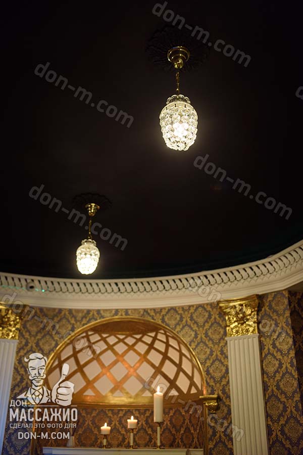 Потолки в здесь высокие, но над их декором местные дизайнеры расстарались: и с отделкой, и с выбором люстр, причем во всех комнатах. Так что если не на массаж, то на экскурсию по архитектурным изыскам, в «Премьер» точно можно заглядывать)